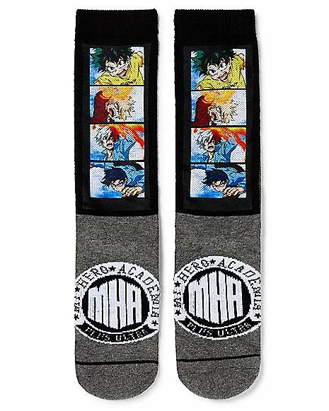 Show love for a legendary series when you rock these incredible My Hero Academia socks! Featuring action shot images of Deku, Bakugo, Ingenium and Shoto Todoroki, these crew socks will make you look like the ultimate anime fan.